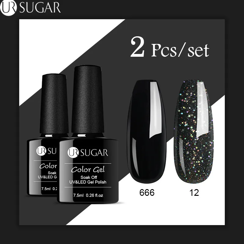 Related Product for UR SUGAR 2Pcs/set Holographic Glitter Gel Nail Polish Nude Color Led Gel Varnish Semi Permanent Soa