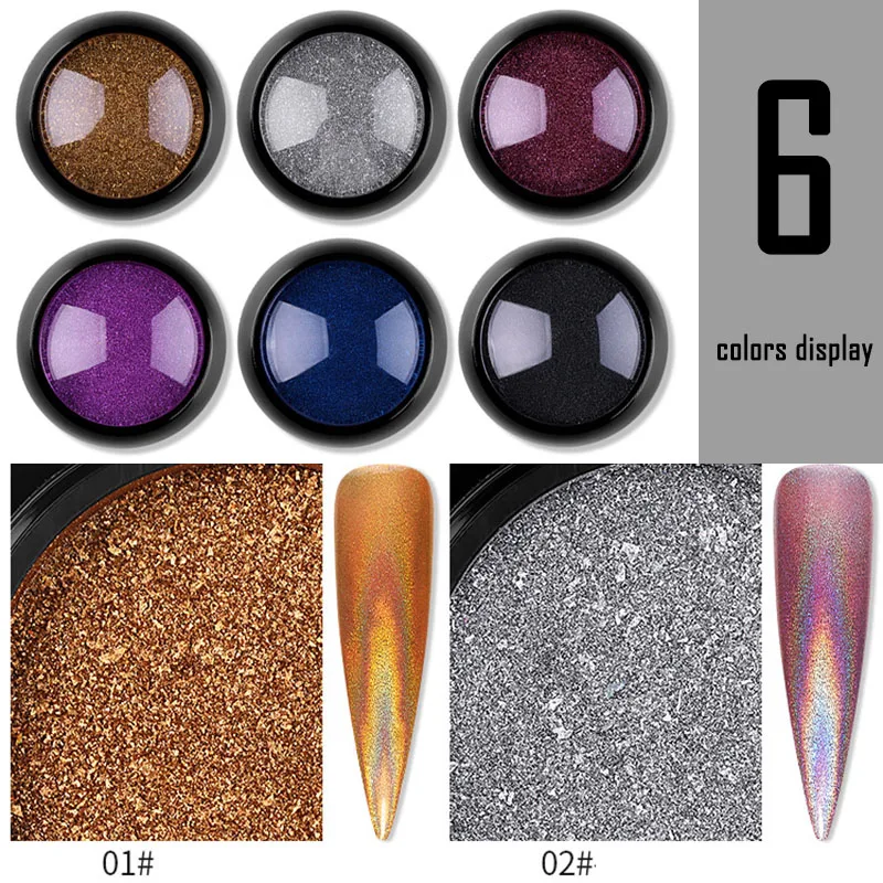 Related Product for 1pc Rainbow Laser Powder Nail Glitter 6 Colors Chrome Pigment Powder With Cotton Stick Rub on Nails