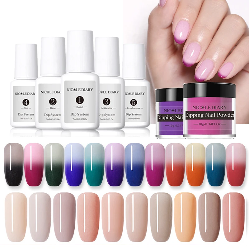 Related Product for NICOLE DIARY Dipping Nail Powder 10g Thermal Temperature Color Changing Powder Dust Without Lamp Cu