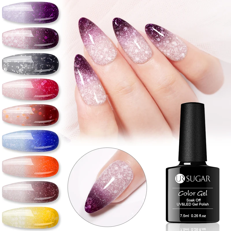 UR SUGAR 7.5ml Rainbow Thermal Gel Nail Polish Holographic Glitter 3 Colors Changing Temperature Soak Off UV Gel Varnish Lacquer