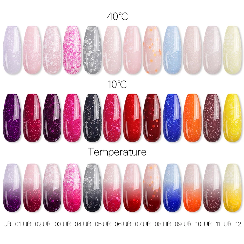 Related Product for UR SUGAR 7.5ml Rainbow Thermal Color Changing Gel Nail Polish Holographic Glitter Temperature Soak