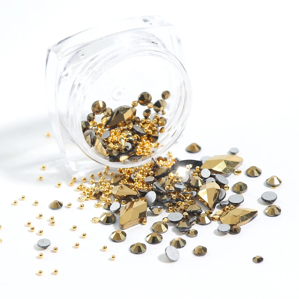 Special Price of 1 Box 3D Shiny Crystal Nail Rhinestone Gold Sliver Diamond Gems Flatback Glitter Pearl Jewelry Mani