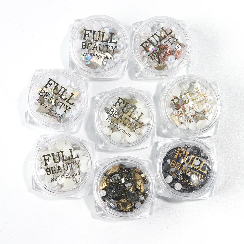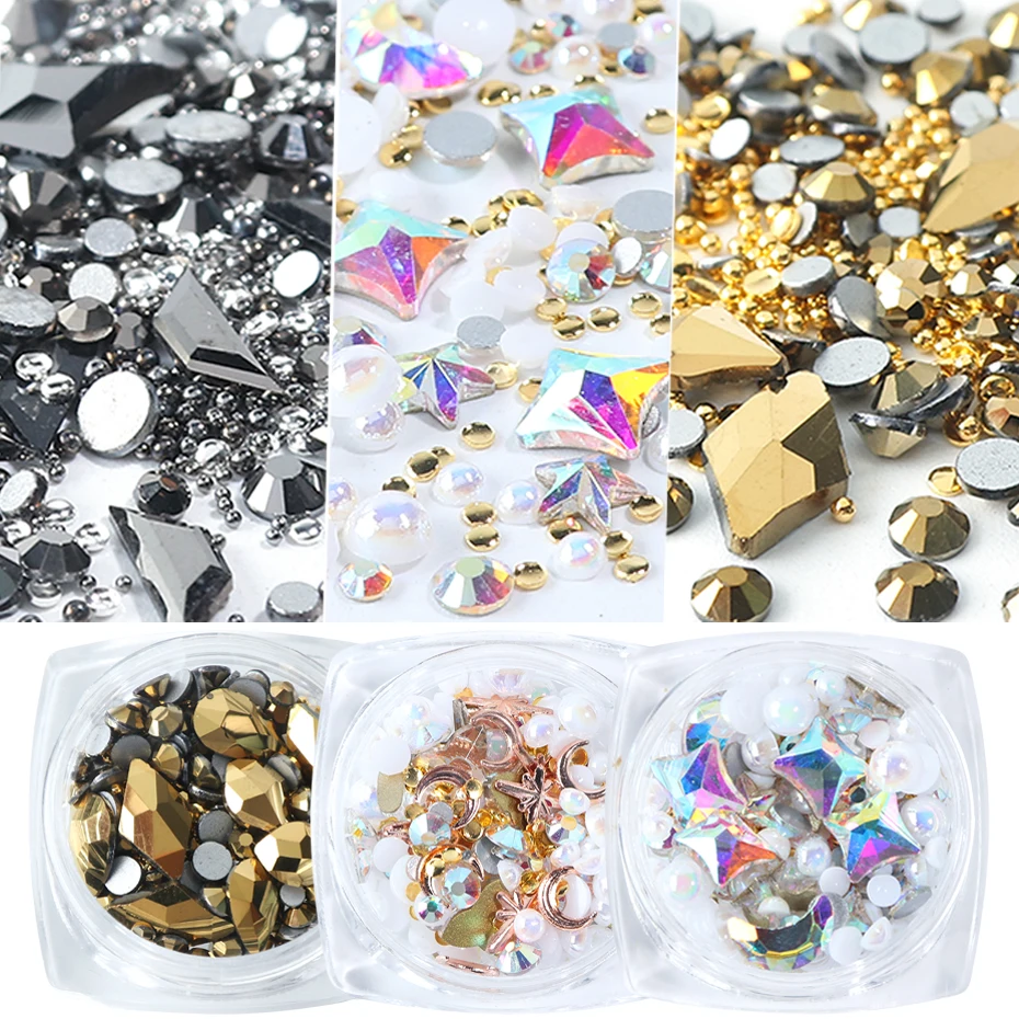 Related Product for 1 Box 3D Shiny Crystal Nail Rhinestone Gold Sliver Diamond Gems Flatback Glitter Pearl Jewelry Mani